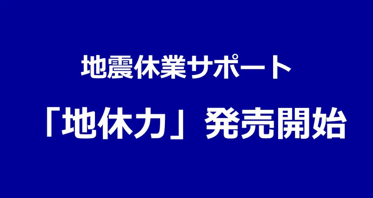 ビジネスガード40周年記念商品“地震休業サポート”「地休力」発売開始 2024年9月24日 お知らせ 2024年9月24日 法人会の福利厚生制度 「地休力」が発売開始されました。 地震休業サポート「地休力」プロモーション映像<約2分00秒> 「地休力」プロモーション映像 東日本大震災で被災された企業経営者へのインタビュー<約3分30秒> 被災企業経営者インタビュー映像 「地休力」ポスター 「地休力(男性版)」ポスター 「地休力(女性版)」ポスター