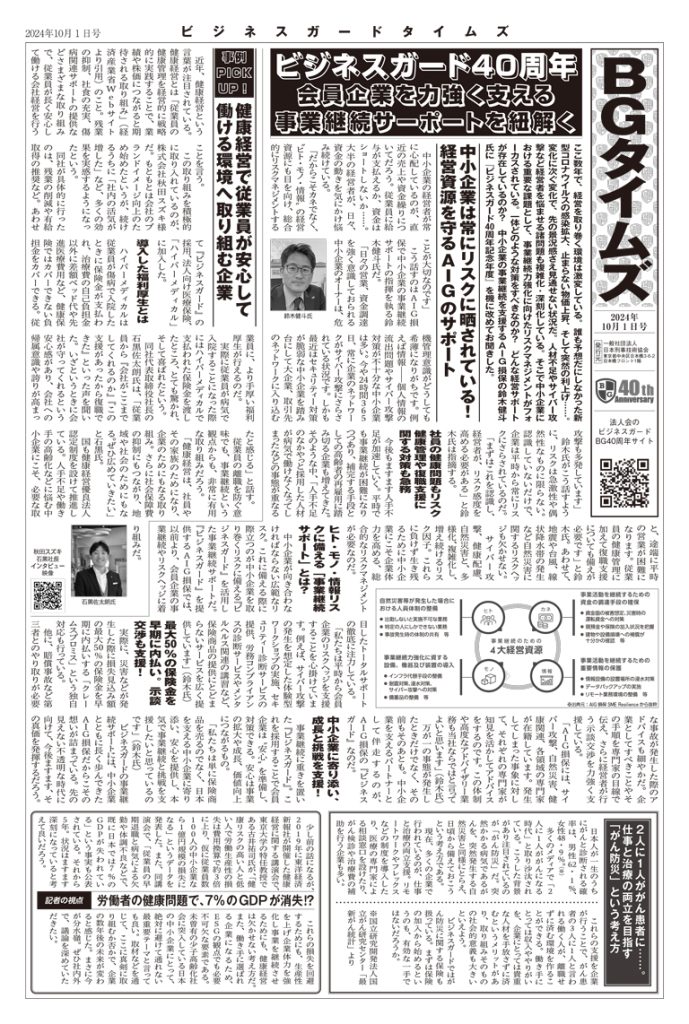 BGタイムズ5号「事業継続サポート」「健康経営」特集をアップしました。