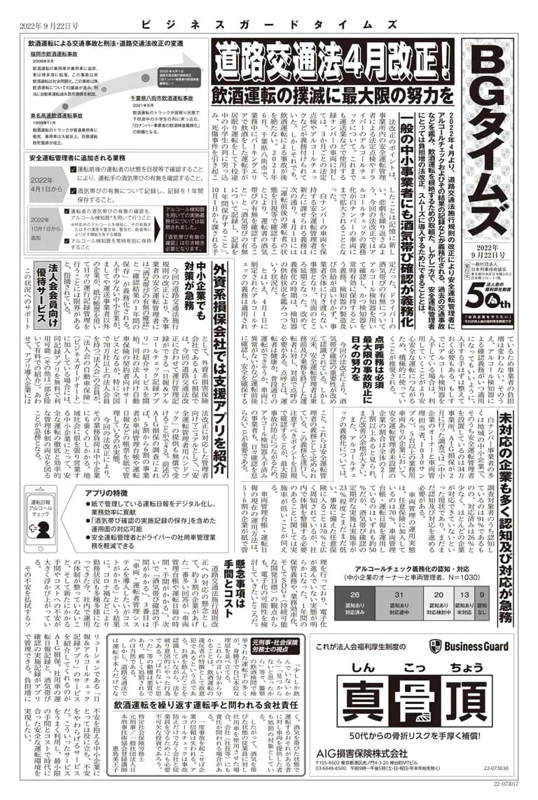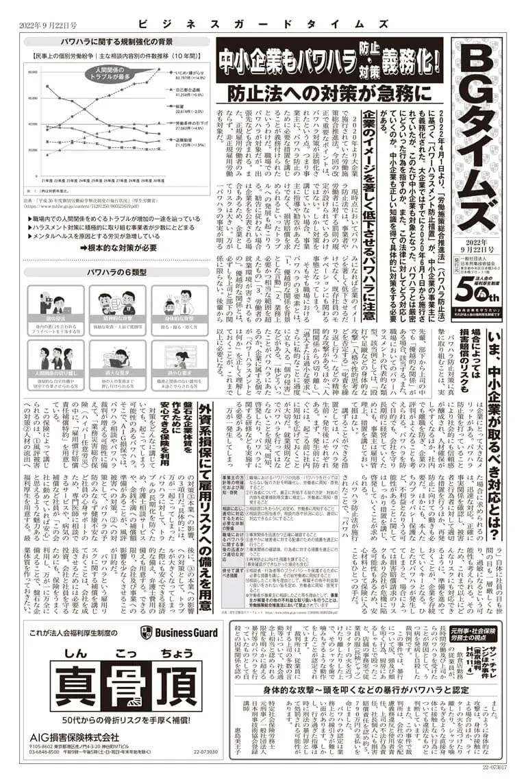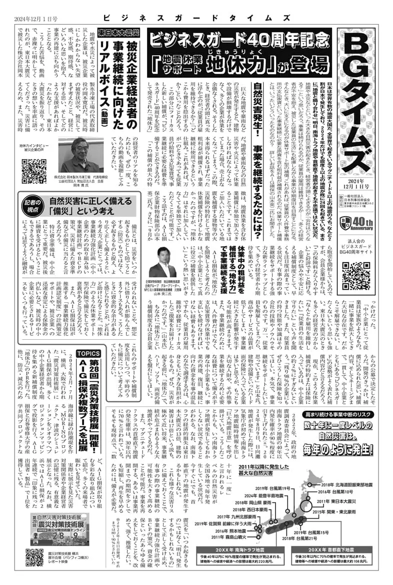 「BGタイムズ」は中小企業が直面する様々なリスクについて、解りやすく解説した記事を掲載した「ビジネスガード」の機関誌です。