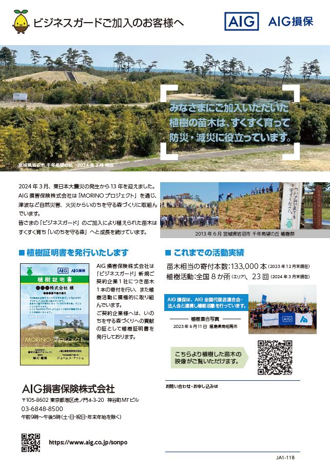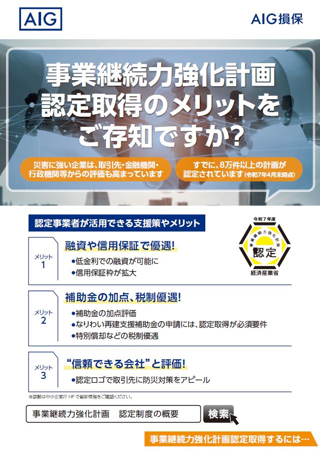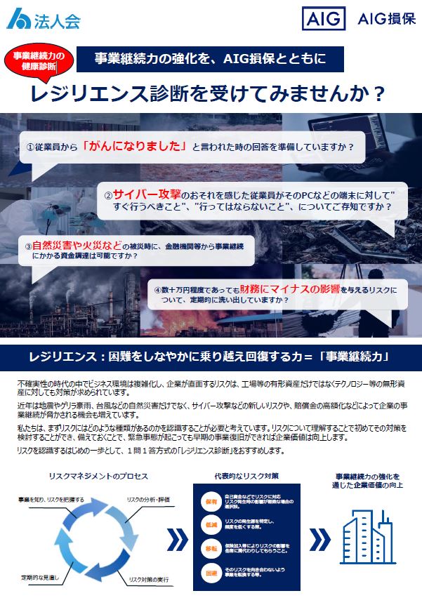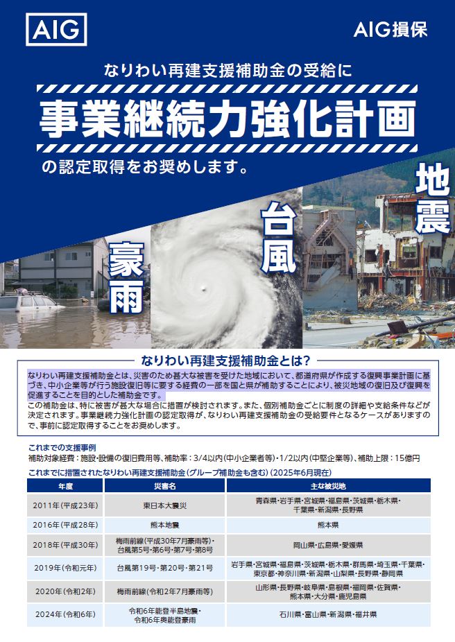 2025年12月25日 その他 【法人会】レジリエンス診断受けてみませんか ちらし レジリエンス診断 RC202511 ファイルをダウンロード 2025年11月1日 その他 レジリエンス診断 ちらし レジリエンス診断を受けてみませんか? ファイルをダウンロード 2025年10月1日 その他 雇用継続資金準備のお勧め ちらし 雇用調整助成金 7A1-533 ファイルをダウンロード 2025年7月1日 その他 なりわい再建支援補助金の受給 ちらし なりわい再建支援補助金 7A1-493 ファイルをダウンロード 2025年6月1日 その他 事業継続力強化計画認定取得メリット ちらし ジギョケイメリット AA1-199 ファイルをダウンロード 2024年3月31日 その他 MORINOプロジェクト植樹報告(植樹証明書) ちらし MORINOプロジェクト植樹チラシ_HJK_V9-6【2024.11】 ファイルをダウンロード 2023年6月27日 その他 経営者の労災時のアンケート 大型保障 労災アンケート DA1-117 ファイルをダウンロード 2023年5月18日 その他 大型ハイパー一体型パンフ 大型ハイパー一体型パンフ 4A6-544 ファイルをダウンロード 2023年5月17日 その他 経営者保険に関するアンケート 大型保障役員賠償アンケート DA1-116 ファイルをダウンロード 2023年3月16日 事業賠償 経営者のリスクマネジメント5-A マンガちらし 経営者のリスク対策はお済ですか?(お仕事中編) ファイルをダウンロード 1 2 次へ